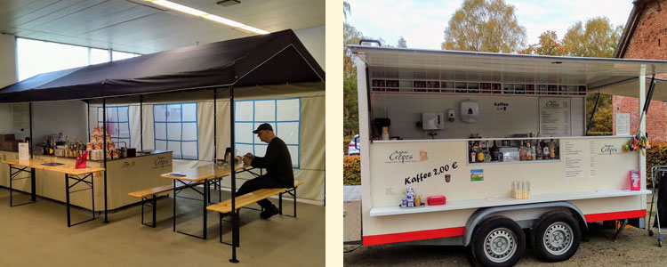 Sie haben die Möglichkeit unseren "Zeltstand" oder den Verkaufswagen zu buchen, je nach Möglichkeiten, bei Ihnen vor Ort.